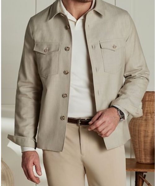 The Shirt Jacket is designed for movement for the ideal fit. Traveling you need a lightweight structured finish for client meetings yet want a relaxed appearance to incorporate a finished piece over your tailored slacks. The Shirt Jacket is one of the most versatile wardrobe essential in a man’s closet. Unlike men’s tailored suit, this is softer and more relaxed than a sport coat yet much more substantial that a shirt. Always perfect with tailored trousers for a downtown meeting or layer it over a refined knit for a Westlake lunch because it moves with you, not against you. Fabrics include: